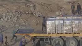 ... aiuti umanitari; un ragazzo è salito su uno dei mezzi che trasportano aiuti, seguito da alcuni bambini che hanno cercato vanamente di imitarlo. È ...